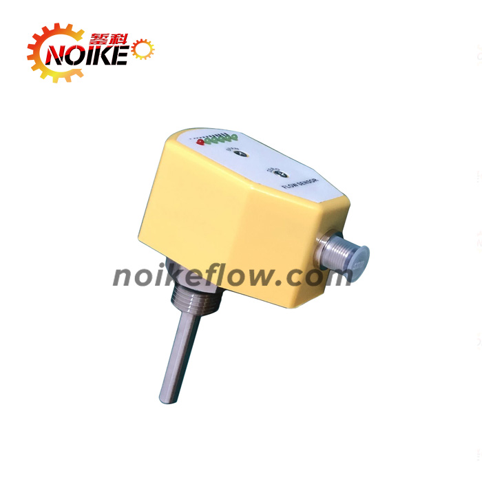 NK300B系列熱導(dǎo)式流量開關(guān)是基于熱交換原理設(shè)計(jì)的。探頭內(nèi)置發(fā)熱模塊及感熱模塊,流量開關(guān)的熱傳導(dǎo)同介質(zhì)的流速密切相關(guān),測量時(shí),由發(fā)熱模塊發(fā)出熱量,如果管道內(nèi)沒有介質(zhì)流動(dòng),則感熱模塊接收到的熱量是一個(gè)固定值,當(dāng)有介質(zhì)流動(dòng)時(shí),感熱模塊所接收到的熱量將隨介質(zhì)的流速變化而變化,感熱模塊將這溫差信號(hào)轉(zhuǎn)化成電信號(hào),再通過處理器將其轉(zhuǎn)換為對應(yīng)的標(biāo)準(zhǔn)模擬量信號(hào)或接點(diǎn)信號(hào)輸出,流量開關(guān)通過這個(gè)信號(hào)對介質(zhì)的流速進(jìn)行顯示及控制。