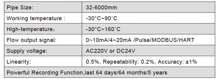 Order information: Pipe size: DN15~700mm, Output: 4-20mA