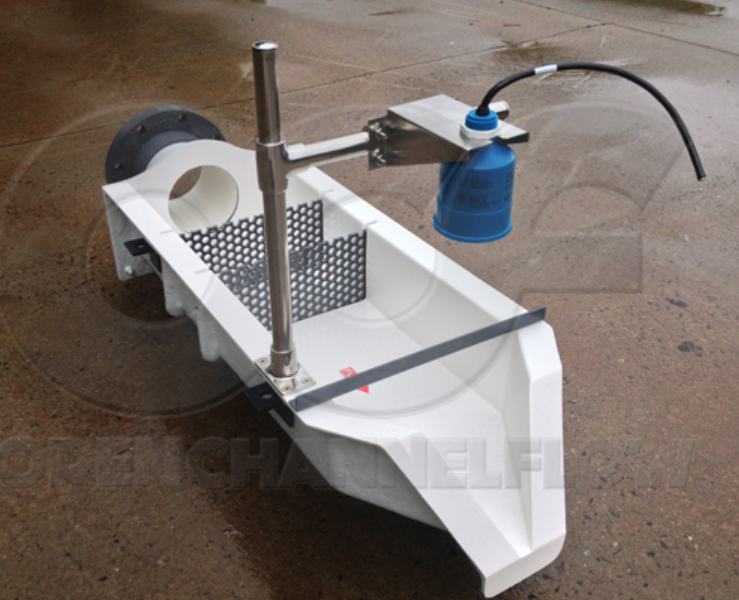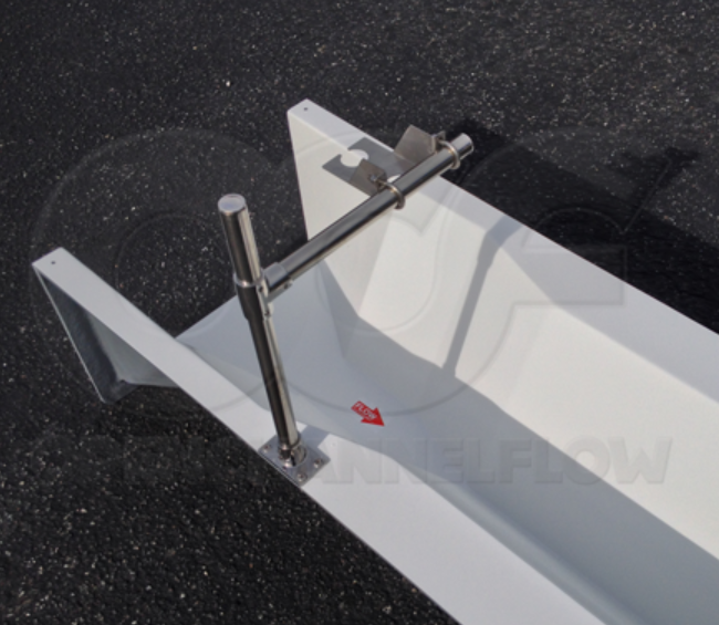 梯形水槽-較大的梯形水槽可能很寬。水槽的傾斜側壁可以代表水槽寬度的很大一部分。對于這些應用,應使用帶有較長水平臂/跨整個煙道寬度的臂的安裝支架,以便傳感器可以安裝在中心線上/確保流量計不會將煙道的側壁檢測為主要回波。