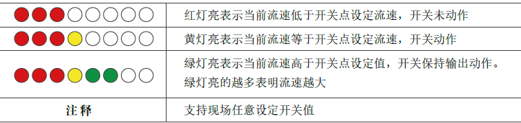 1個(gè)黃色LED(流速=開關(guān)點(diǎn))